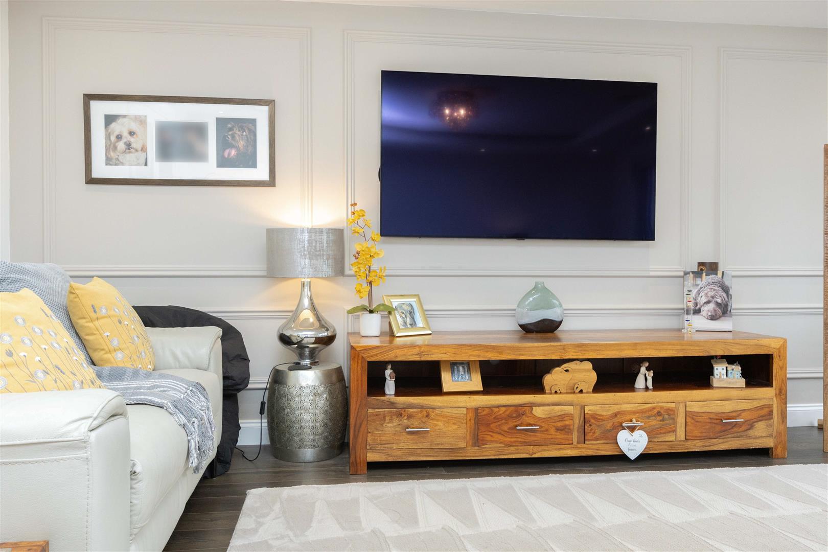 The property is further enhanced with gas central heating, double glazed windows and large driveway with a detached garage. There are also generous sized gardens to the front and rear with the rear landscaped with a raised artificial lawn area and composite decked patio.