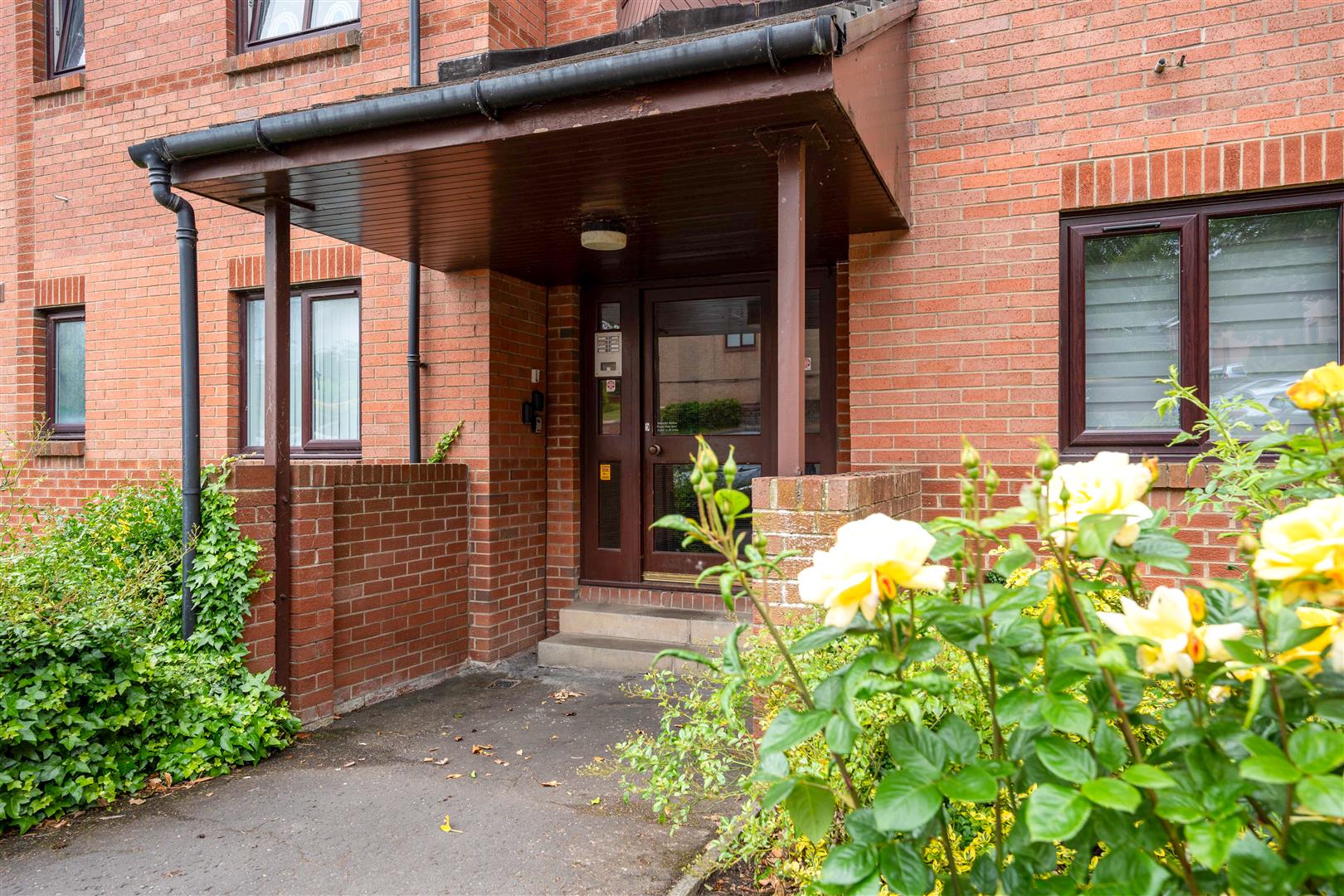 Additional highlights include double-glazed windows, gas central heating, and secure door entry. Residents will appreciate the convenient off-street parking to the front and access to well-kept communal gardens at the rear.