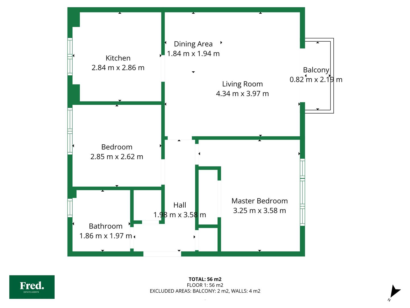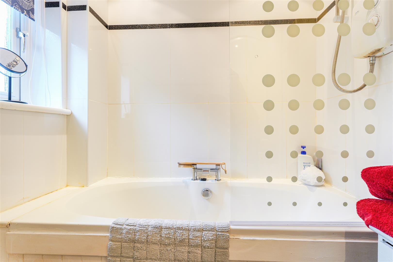 Both bedrooms are fully carpeted for added comfort. The primary bedroom boasts mirrored fitted wardrobes for effortless storage, while the second bedroom offers versatility, ideal as a guest room, or home office. The fully tiled bathroom is complete with a WC, wash basin, and a bath with overhead shower. The property also hosts 2 additional storage cupboards in the hallway for added convenience.