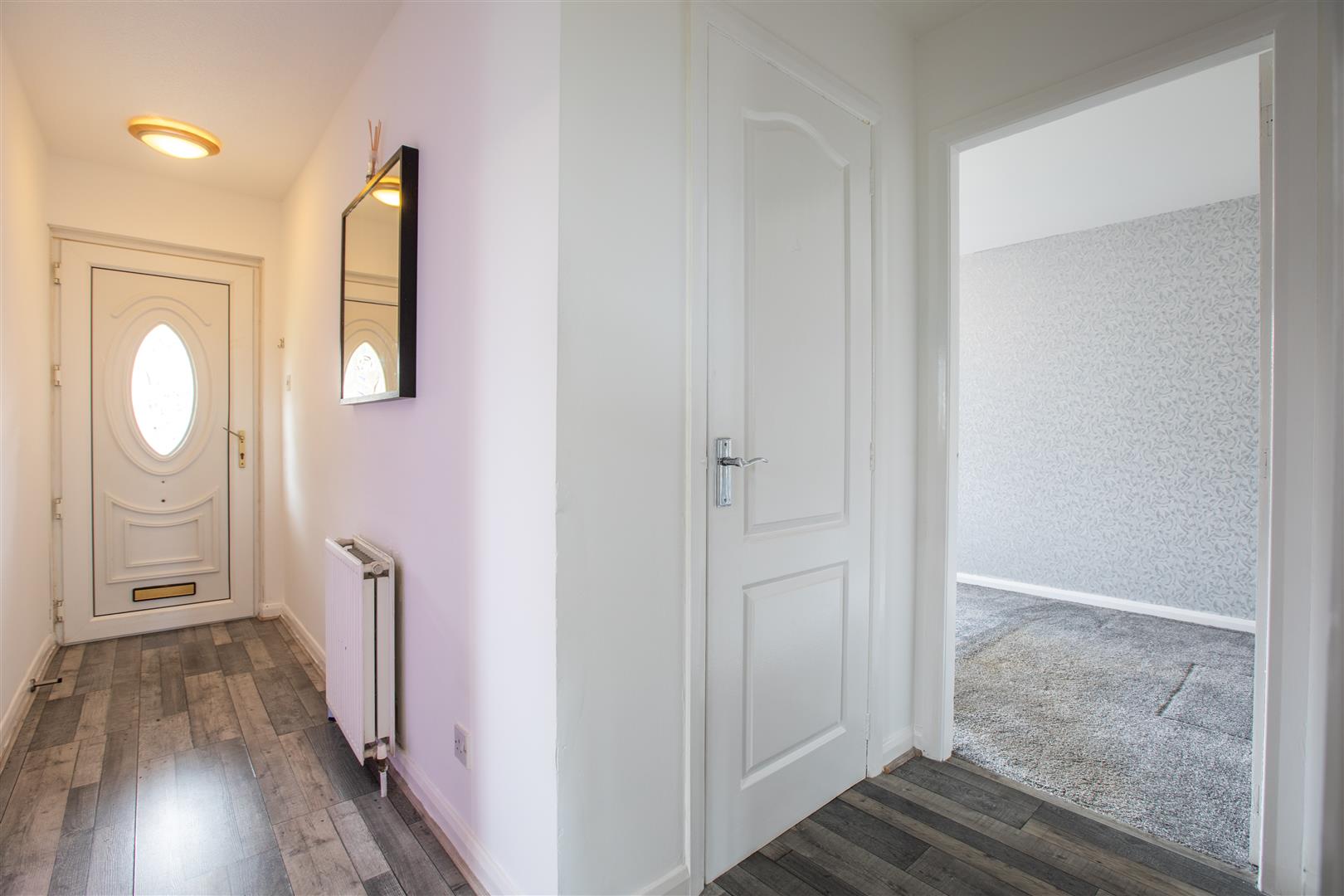 This property welcomes you with an entrance hallway featuring laminate flooring, leading into a spacious front-facing lounge/dining area. The fitted kitchen is designed with modern handleless wall and floor units, complemented by an integrated eye-level oven. A washing machine and tumble dryer are also conveniently included in the sale.
