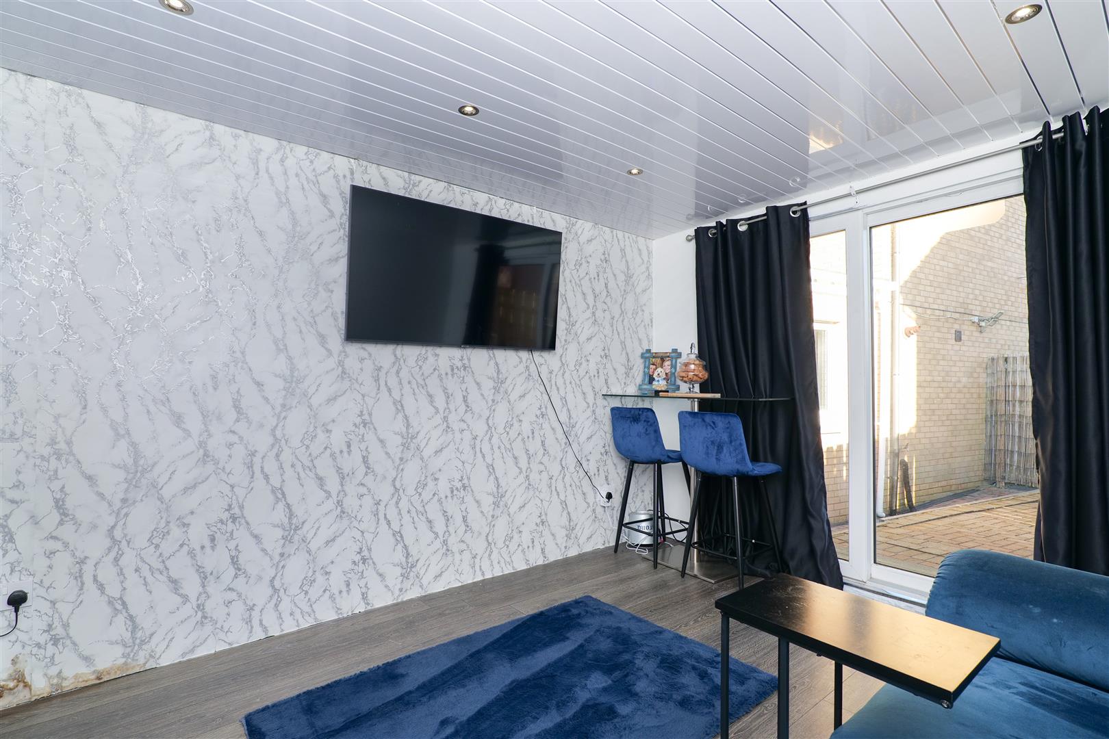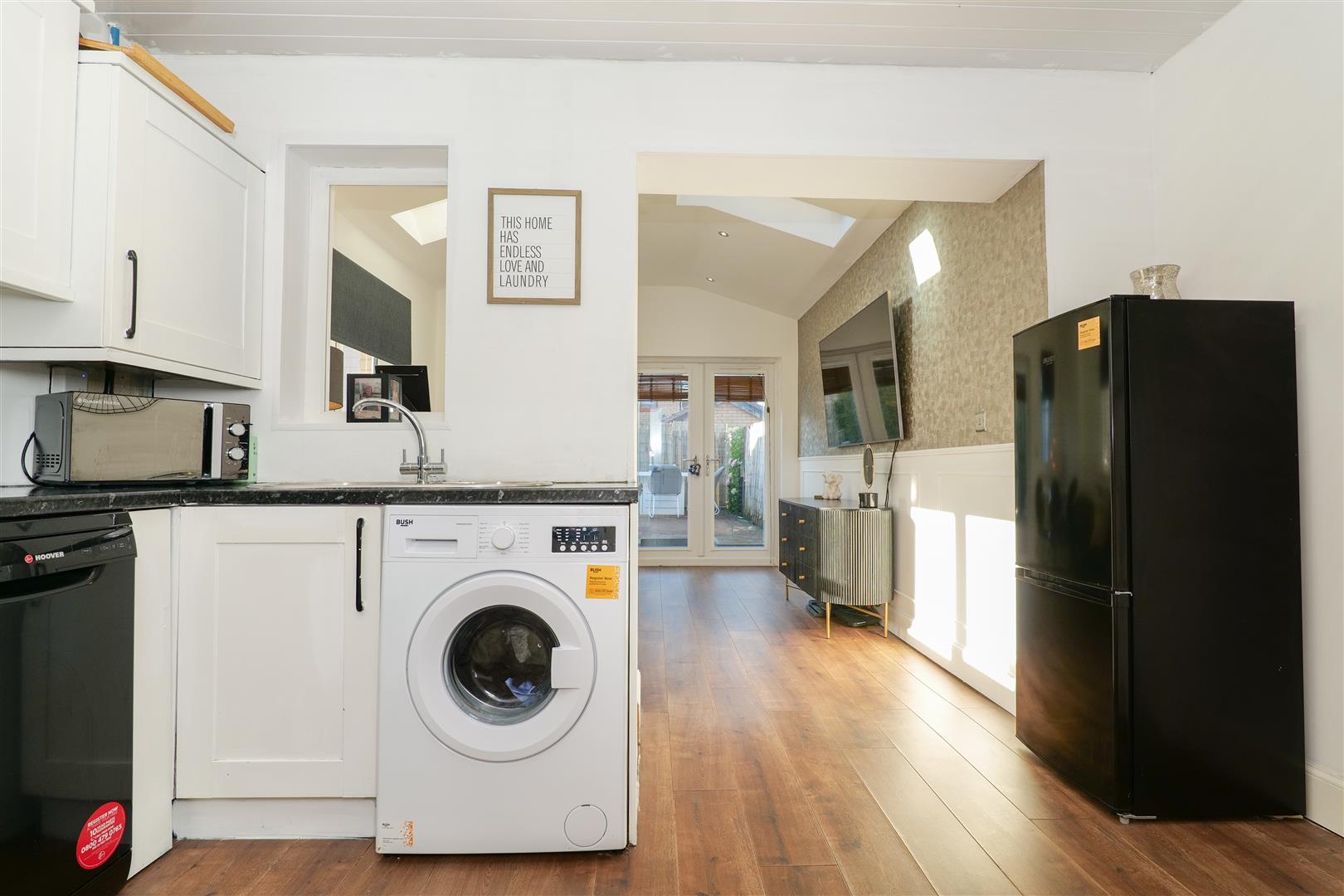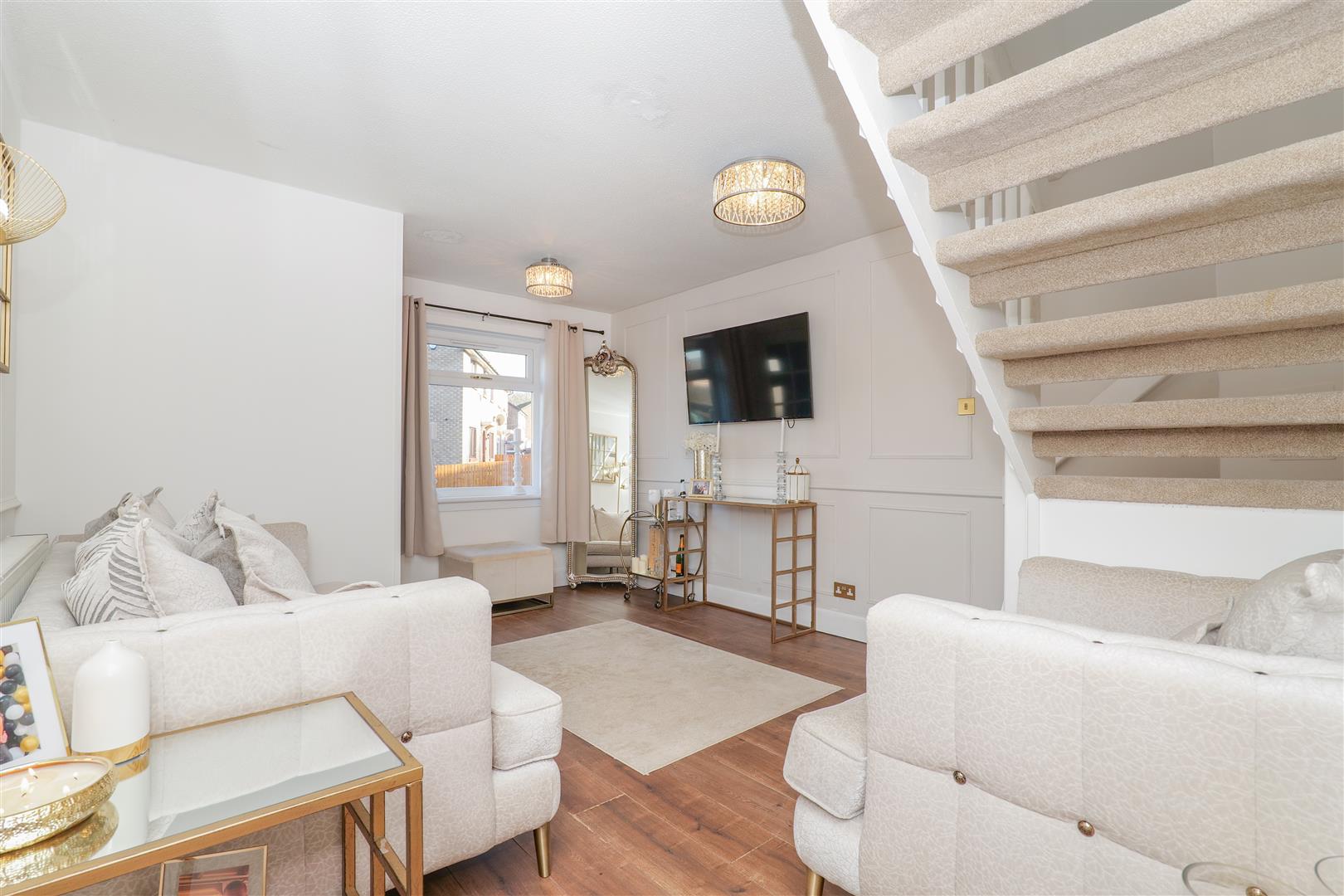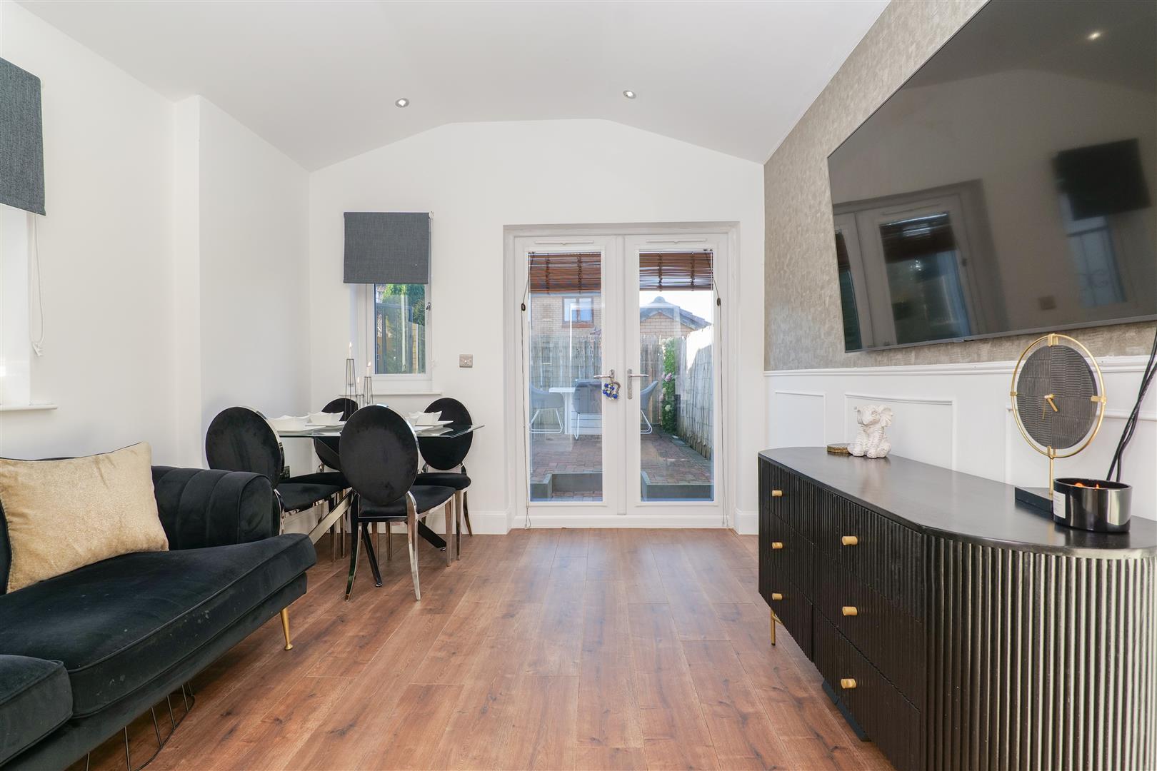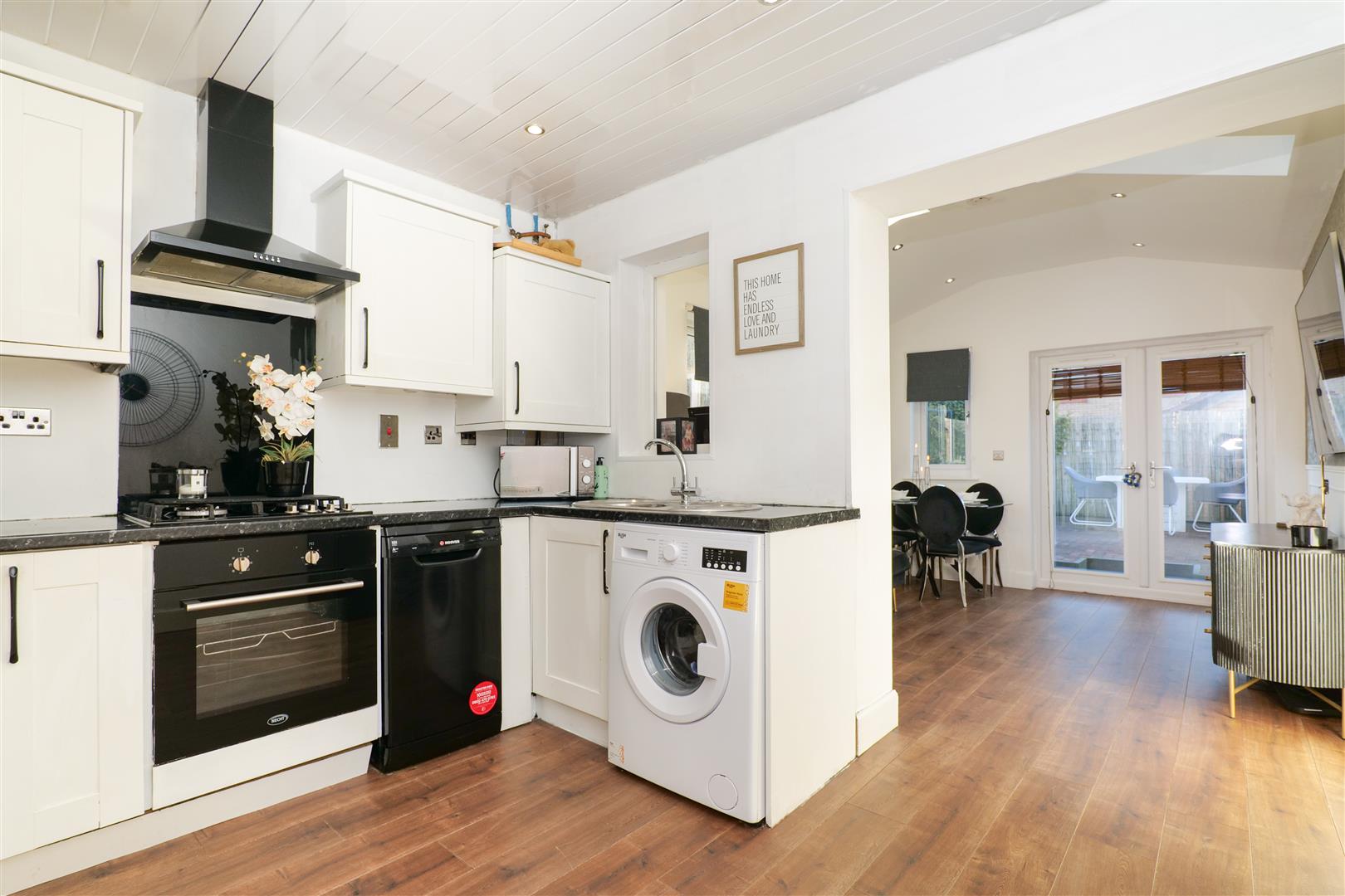 Set over two levels, the ground floor comprises of a welcoming entrance hall, open plan lounge with laminate flooring and front facing window allowing for plenty of natural light, a stunning fully fitted kitchen with integrated appliances and leads into a dining/family area forming part of the rear extension which has a feature decor wall and French doors allowing for access to rear garden. On the upper level you will find two double bedrooms, both of which have laminate flooring with fitted floor to ceiling mirrored wardrobes. Completing this floor is a stylish fully tiled bathroom consisting of WC, vanity sink unit and bath with overhead electric shower.